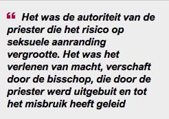 Daarom is de bisschop verantwoordelijk voor de gevolgen van de aanstelling van de priester. Hoewel gebaseerd op afwijkende argumenten uit die van de groepsvordering ingesteld door de slachtoffers van seksueel misbruik in België, is deze rechtspraak belangrijk.